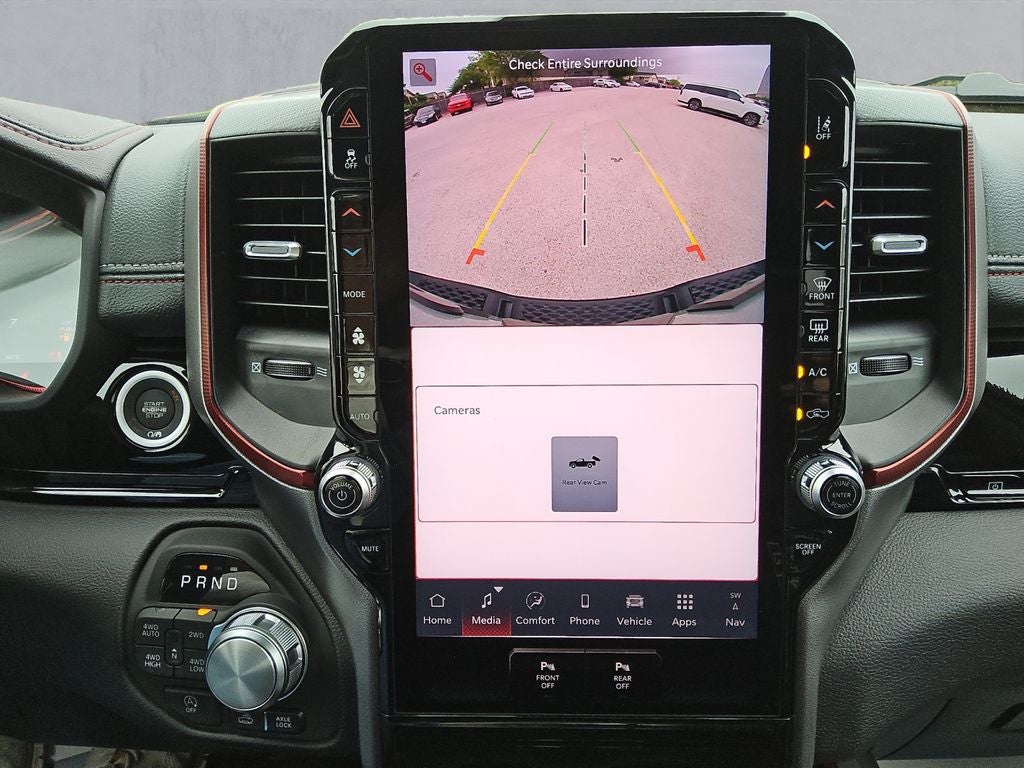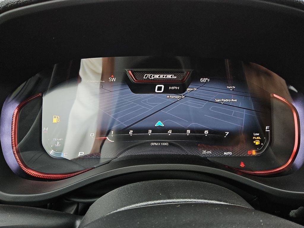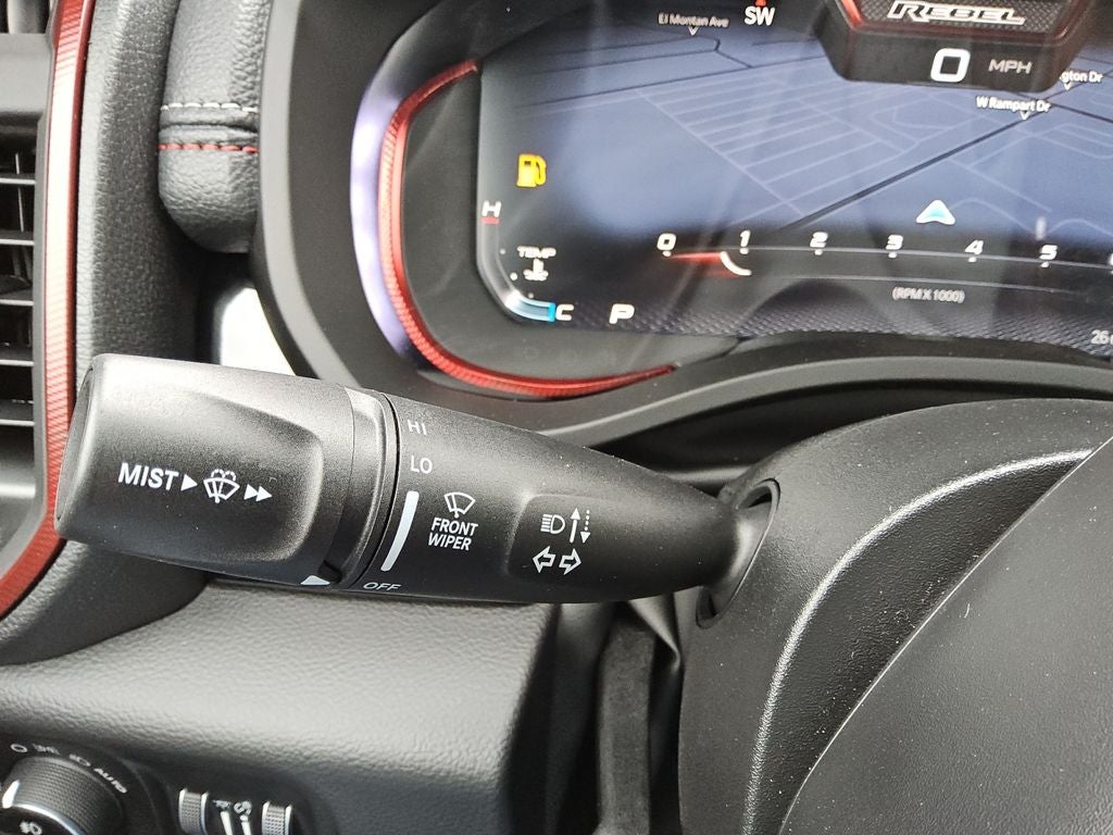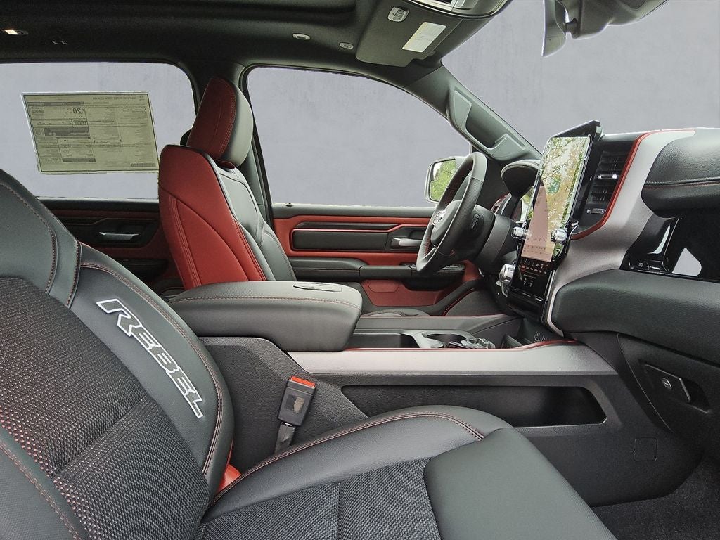 The Rebel's distinctive exterior styling, with its accent-colored door handles, tailgate handle, and power-folding mirrors, exudes a bold and confident presence. The dual-pane panoramic sunroof floods the cabin with natural light, creating an open and airy atmosphere that elevates your driving experience.