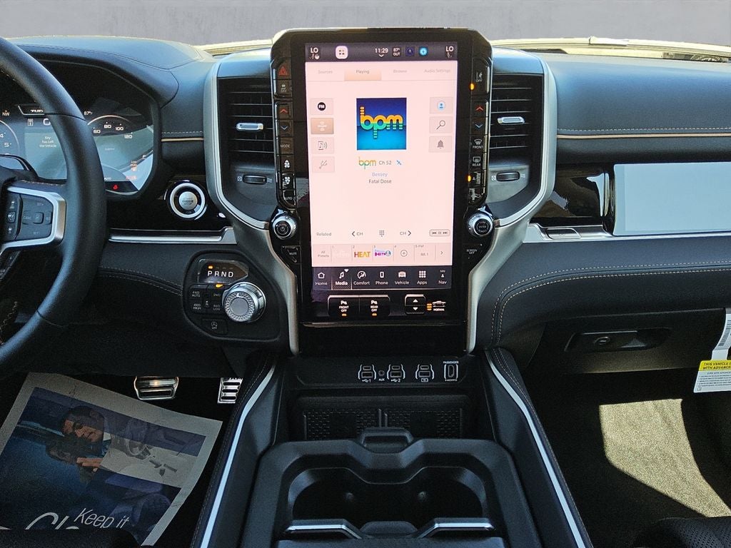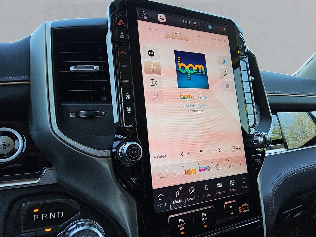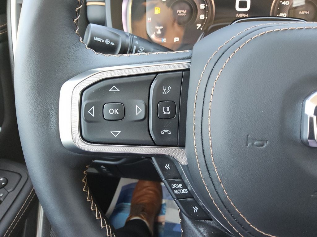 Climb inside and experience the unparalleled comfort and technology of this Tungsten trim. Enjoy the convenience of dual-zone automatic climate control, a premium leather-wrapped steering wheel, and a state-of-the-art Uconnect 5 Nav infotainment system with a massive 14.4 display. The Heads-Up Display keeps vital information in your line of sight, while the power-adjustable, heated, and ventilated front seats provide exceptional support and comfort.