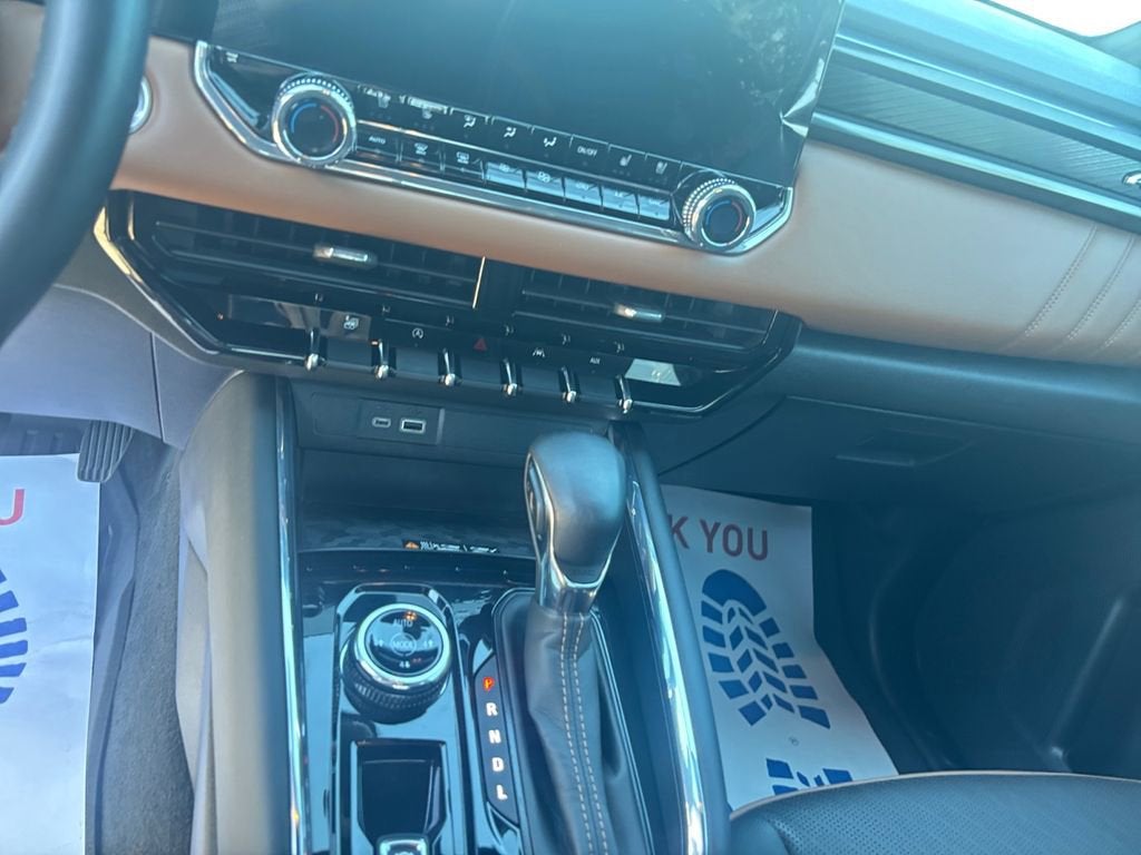 Step inside the Canyon AT4, and you'll be greeted by a beautifully appointed interior. The Jet Black and Timber perforated leather-appointed seats are not only visually stunning but also incredibly comfortable, with ventilated front seats and a heated steering wheel to keep you comfortable in any weather. The 11.3-inch premium GMC Infotainment system provides seamless connectivity, with wireless Apple CarPlay and Android Auto integration, as well as a 6.3-inch multicolor head-up display for easy access to vital driving information.