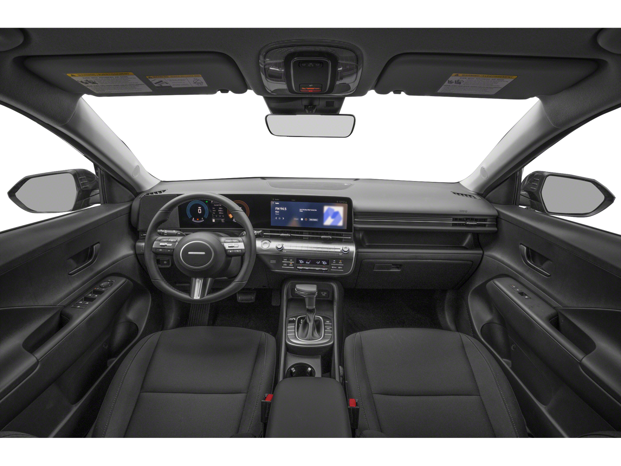 - 6 Speakers, AM/FM radio: SiriusXM, Radio: AM/FM/HD Radio/SiriusXM Audio System, Air Conditioning, Automatic temperature control, Front dual zone A/C, Rear window defroster, Power driver seat, Power steering, Power windows, Remote keyless entry, Steering wheel mounted audio controls, Speed-sensing steering, Traction control, 4-Wheel Disc Brakes, ABS brakes, Dual front impact airbags, Dual front side impact airbags, Emergency communication system: Bluelink+, Front anti-roll bar, Front wheel independent suspension, Low tire pressure warning, Occupant sensing airbag, Overhead airbag, Brake assist, Electronic Stability Control, Exterior Parking Camera Rear, Auto High-beam Headlights, Delay-off headlights, Fully automatic headlights, Panic alarm, Security system, Speed control, Bumpers: body-color, Heated door mirrors, Power door mirrors, Spoiler, Turn signal indicator mirrors, Apple CarPlay & Android Auto, Cloth Seat Trim, Driver door bin, Driver vanity mirror, Front reading lights, Illuminated entry, Leather steering wheel, Outside temperature display, Passenger vanity mirror, Rear seat center armrest, Tachometer, Telescoping steering wheel, Tilt steering wheel, Trip computer, Front Bucket Seats, Front Center Armrest, Split folding rear seat, Passenger door bin, Alloy wheels, Wheels: 18 x 7.0J Glossy Black Alloy, Rear window wiper, Variably intermittent wipers
